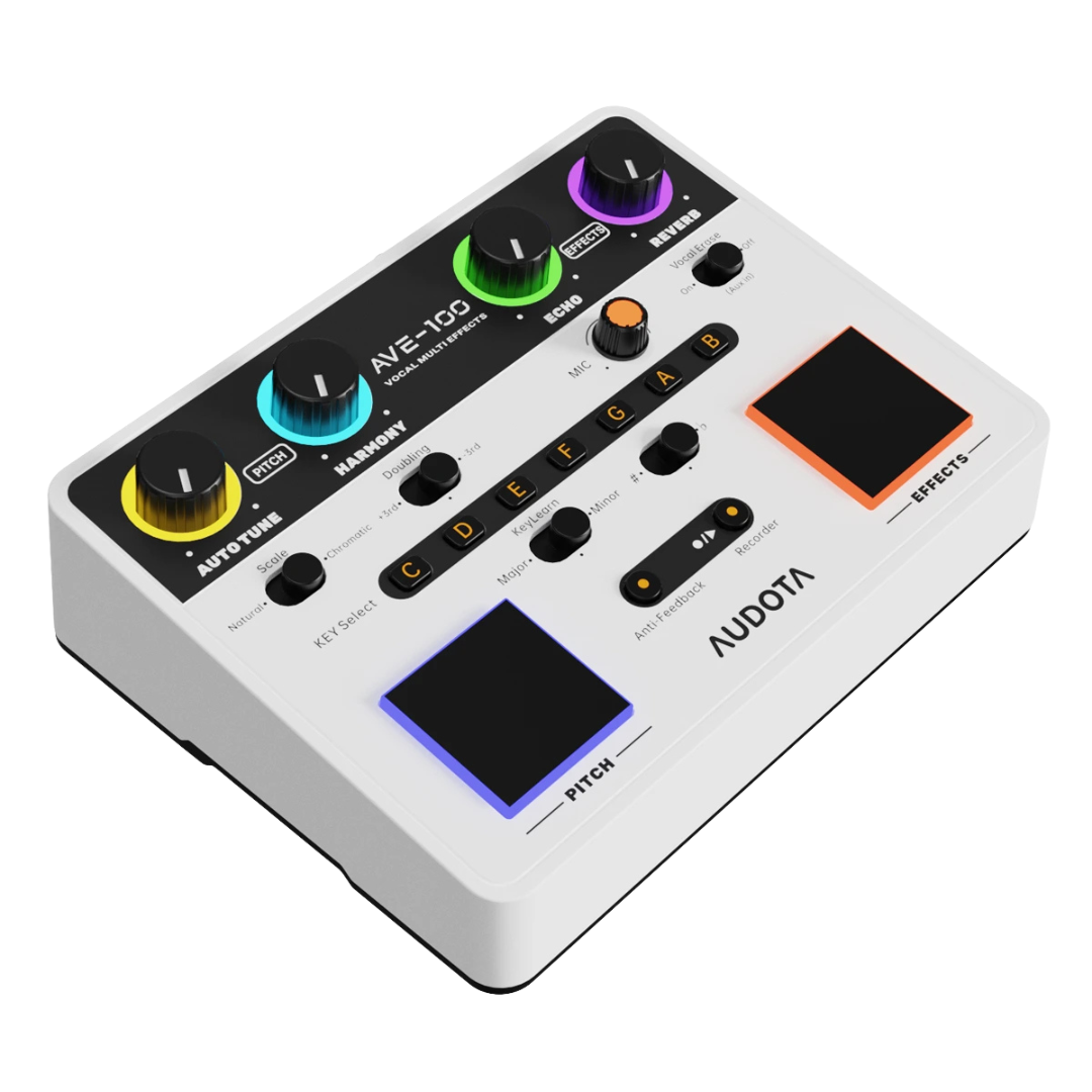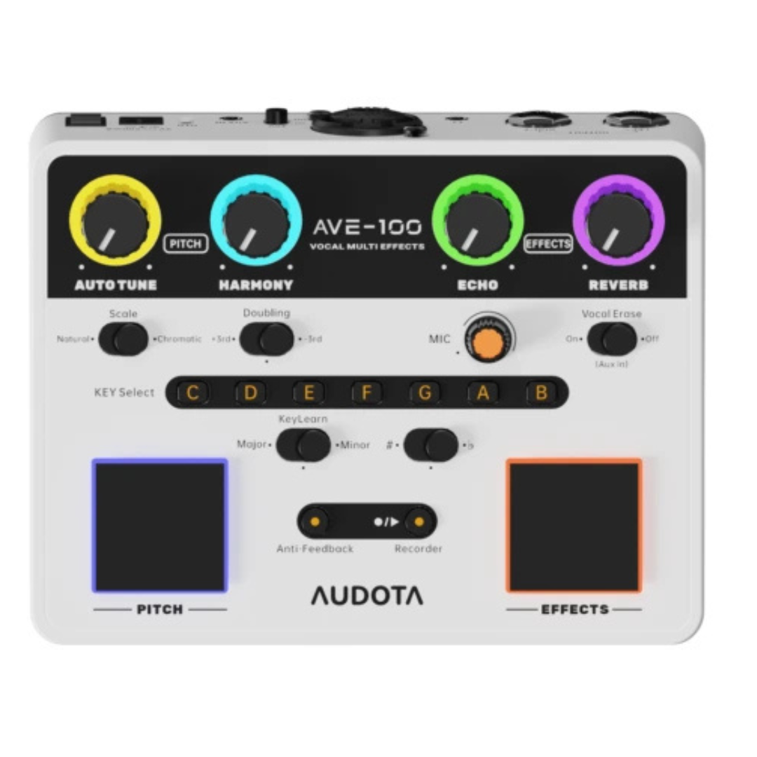 Elevate your vocal performances to professional levels with the Audota AVE-100, a compact yet powerful vocal multi-effects processor tailored for live stages, studios, and rehearsal spaces. This innovative device seamlessly integrates advanced AI-driven features, precise pitch correction, and immersive spatial effects to deliver crystal-clear vocals with enhanced depth and harmony. Whether you’re a solo artist seeking real-time Auto-Tune finesse or a band vocalist needing intelligent harmonization, the AVE-100 adapts effortlessly to your needs. Its user-friendly interface, including one-touch controls and automatic key detection, ensures hassle-free operation, while built-in tools like vocal removal from tracks and feedback suppression keep your sound pristine even in high-energy environments. Compact and lightweight, it’s the ultimate portable companion for musicians on the go, combining studio-quality processing with live reliability.