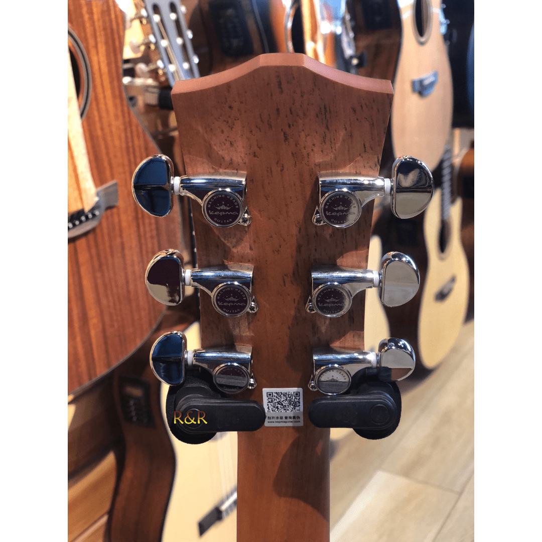 The Kepma EACE boasts premium die-cast tuning machines, ensuring stable and accurate tuning. Its anti-rust coated strings enhance longevity and provide a crisp sound. The guitar also features standard X-scalloped bracing for structural integrity and excellent sound projection. With a matte finish, the instrument has a sleek and understated appearance.