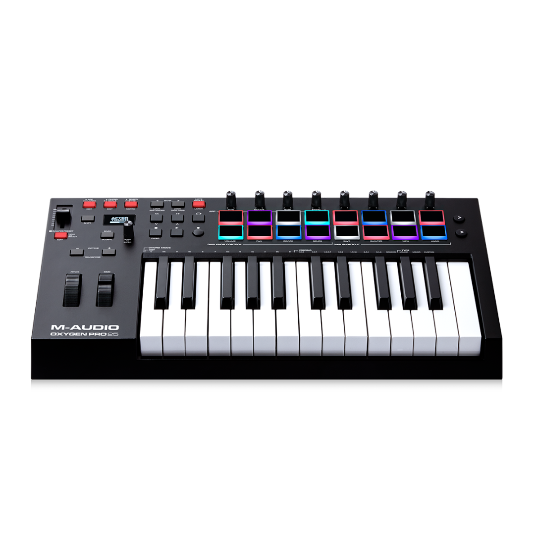 The M-Audio Oxygen Pro 25 is a compact, professional USB MIDI keyboard controller designed for musicians and producers who need powerful control in a portable package. It features 25 semi-weighted, velocity-sensitive keys with aftertouch and assignable zones, allowing for expressive and dynamic playing.
